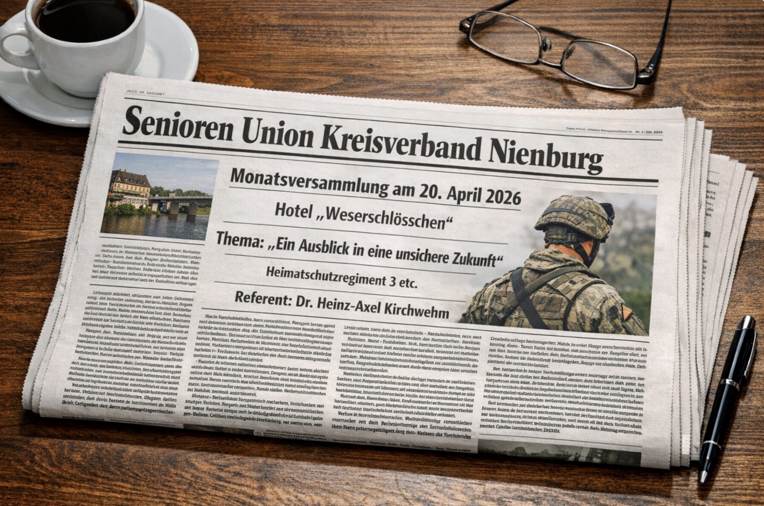Die SeniorenUnion und die FrauenUnion laden am 20. April 2026 um 15:00 Uhr ins Weserschlößchen zu einer gemeinsamen Veranstaltung ein. Im Mittelpunkt steht ein hochaktuelles Thema: Heimatschutz – Sicherheit beginnt vor unserer Haustür.