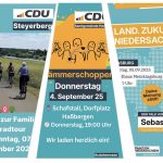 Im CDU-Kreisverband Nienburg ist in dieser Woche einiges los – von gemütlichem Beisammensein über politische Diskussionen bis hin zu einer Familien-Fahrradtour. Mitglieder, Freunde und Interessierte sind herzlich eingeladen, dabei zu sein. Donnerstag: Dämmerschoppen in Haßbergen Die CDU in der Samtgemeinde